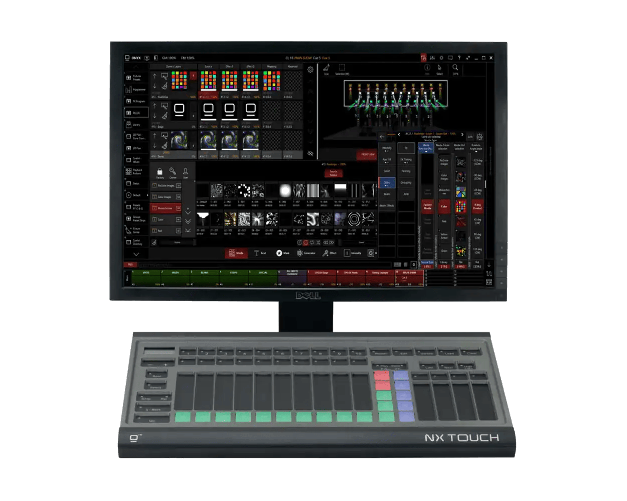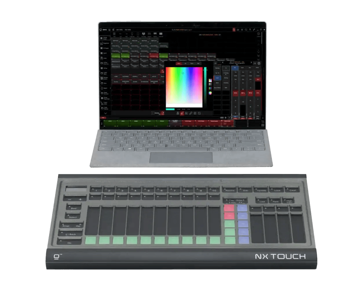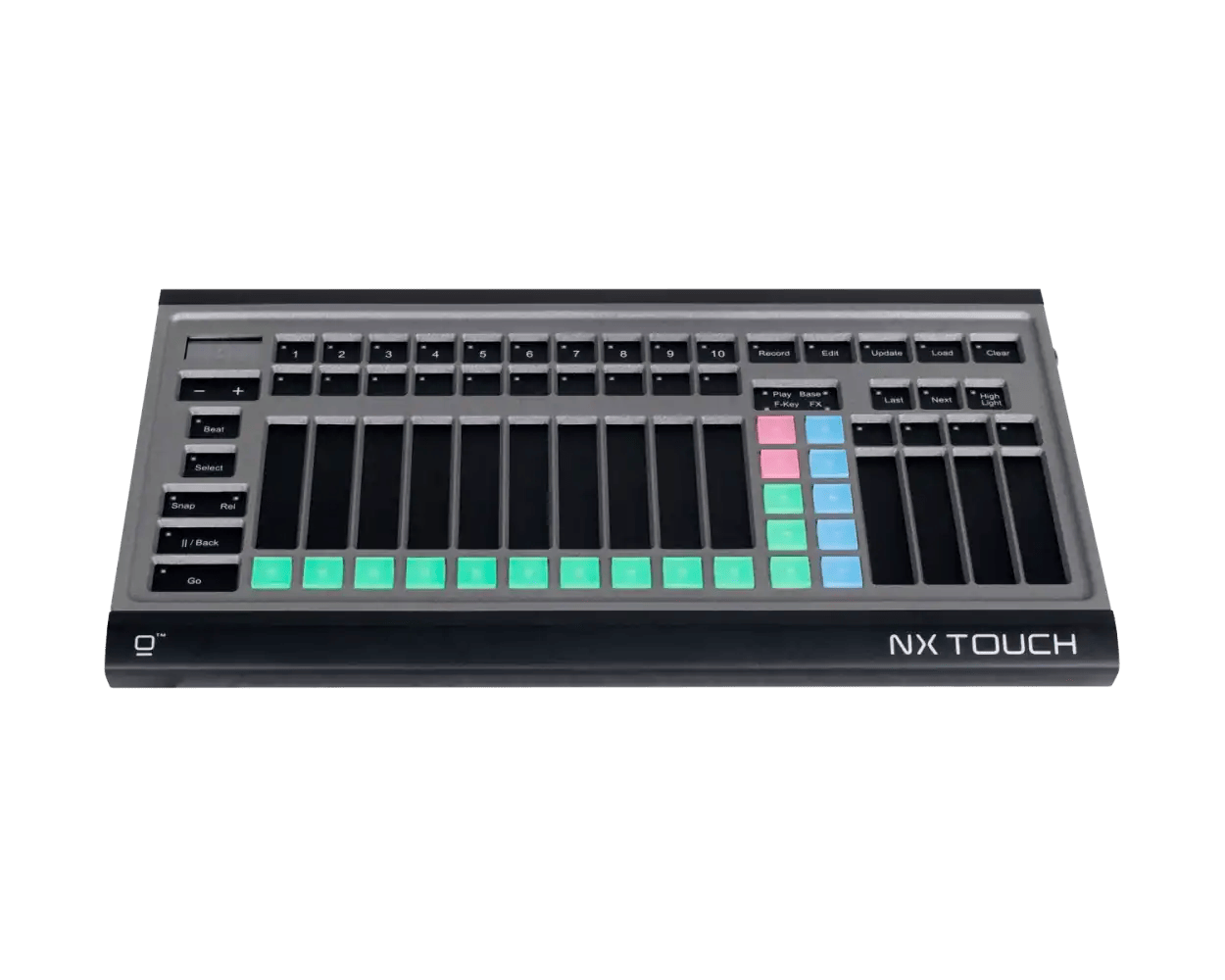 Its USB connectivity ensures plug-and-play simplicity, while its durable construction and lightweight design make it perfect for mobile setups and compact control environments. The NX Touch is also widely used as an expansion wing for all ONYX consoles, allowing users to add more control flexibility to their system without the bulk of a full-sized console.