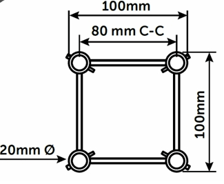 The Eagle TS104 100mm mini box truss is a versatile solution for light weight applications. Constructed using high-quality 6082 T6 Aluminium, this mini truss is designed with main tubes measuring 20mm in diameter and 2mm thickness, along with a brace diameter of 5mm, making it the perfect choice for banner frames, exhibition stand building, recording studio speaker rigging, and lightweight lighting bars for stages with low clearance.