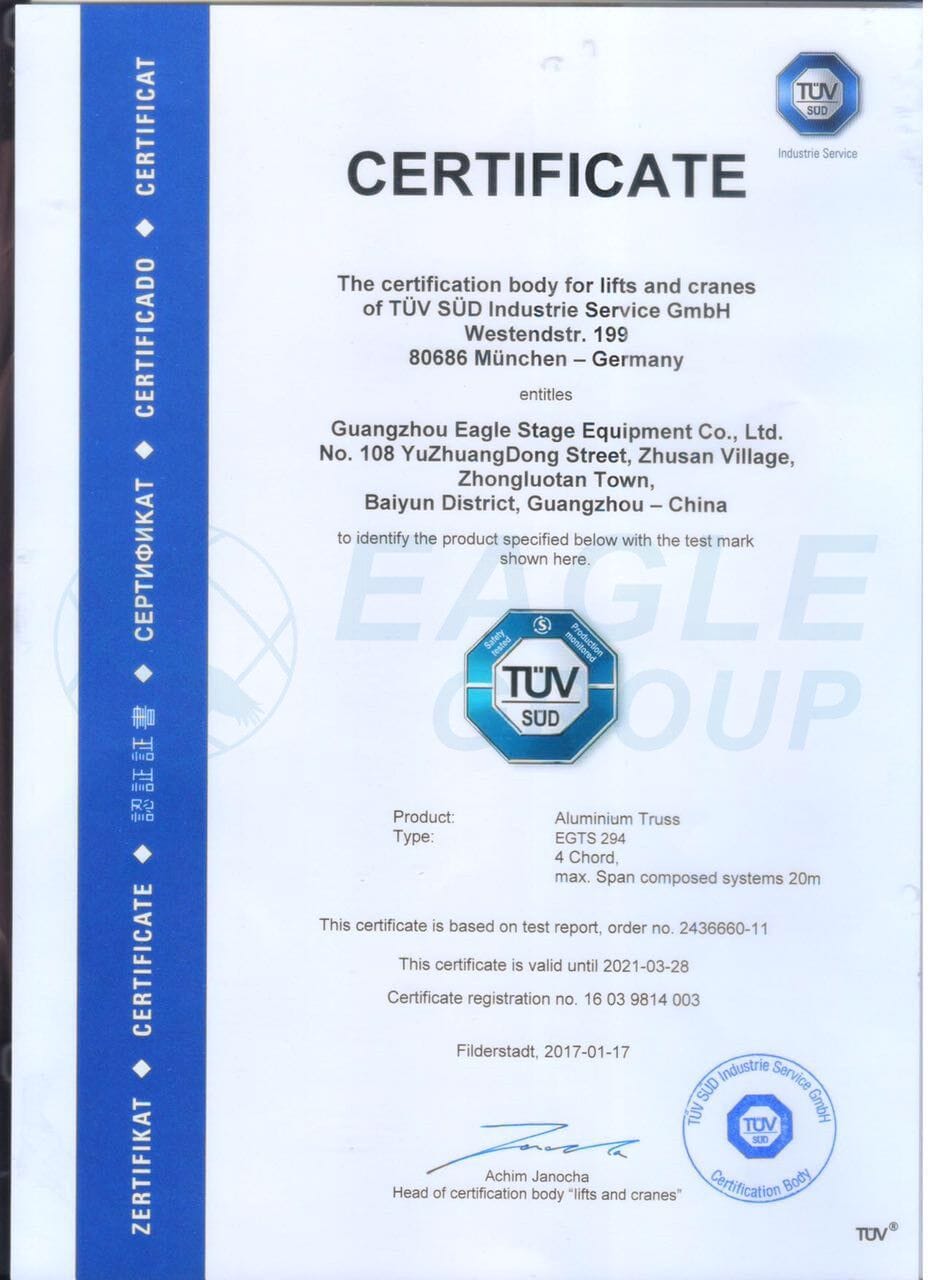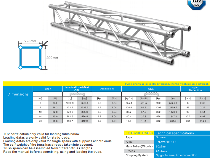 EAGLE TRUSS 290X290MM BOX TRUSS 50X3MM MAIN TUBE, TUV CERTIFIED