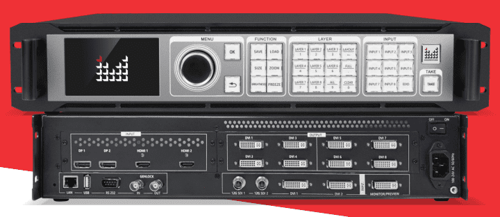 LED-640 is equipped with one touch screen for quick menu browsing and parameter adjustment, Knobs and buttons can accurately adjust various parameter of layers. It’s very popular for rental events for the small size, powerful function and convenient use.