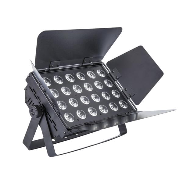 The P24 is a compact LED panel/soft light with barn doors for stage wash. It comes in 5 different LED configurations to suit different color requirements. It is an economical alternative to larger soft lights, and LED fresnels.